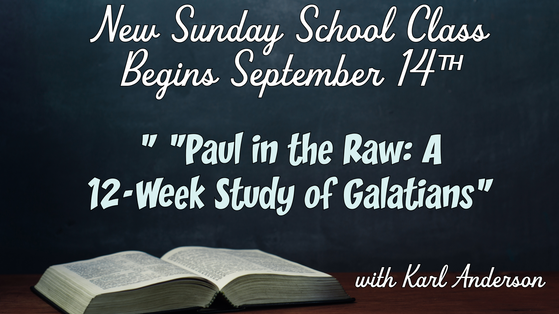 Current Sunday School Classes Paul in the Raw A 12 week study of Galatians, class led by Karl Anderson.
